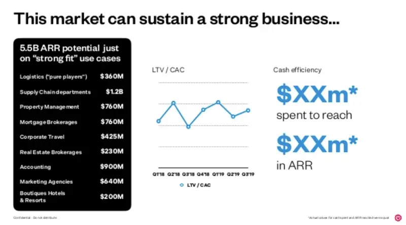This example from Moz’s Series B Round shows the impact of highly readable traction metrics that tell a good story: