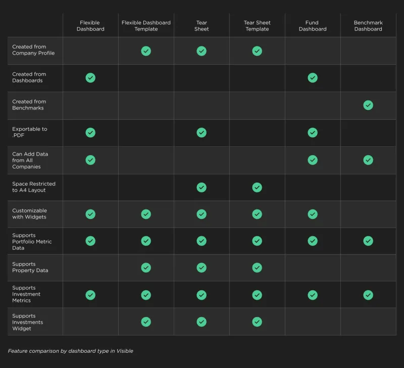 Visible supports four types of dashboards, each with a dedicated purpose. Continue reading below to learn more:
