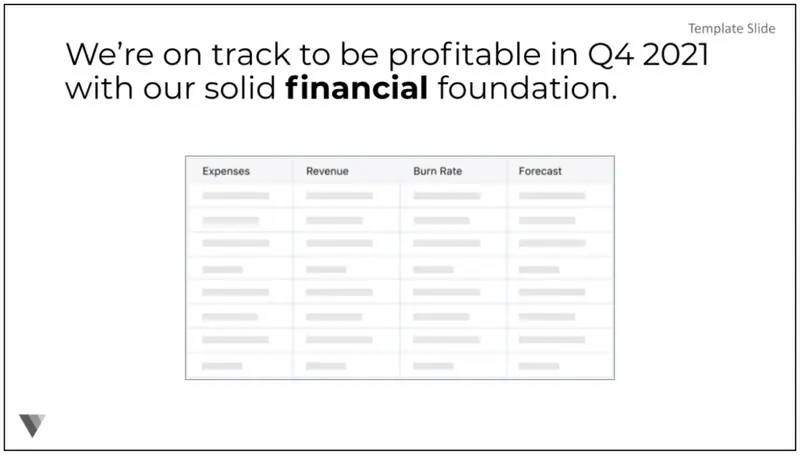 This is where you highlight your key metrics. This is arguably the most important slide because you’re showing the facts to back up your narrative.