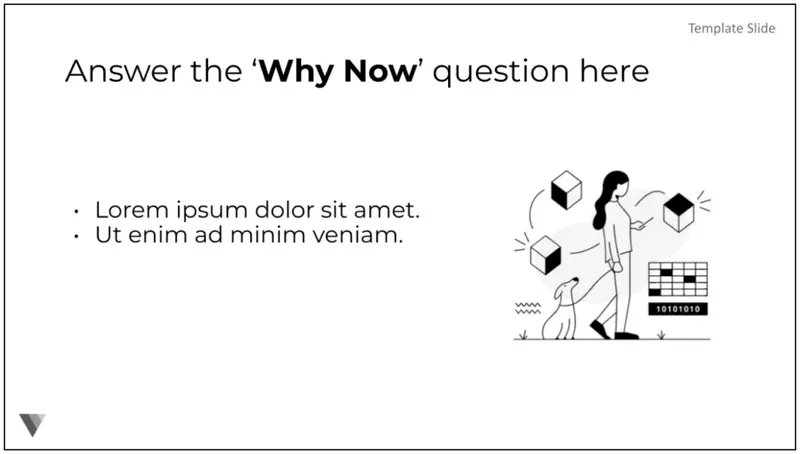 Emphasize why investors are joining you at the right moment in time. You can highlight the historical evolution of your industry and define recent trends that make your solution possible. It’s important to highlight growth trends in the market so as not to assume the market has already hit its peak.