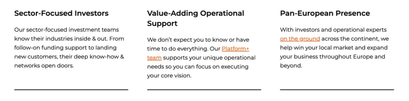 From day one, you have full access to our experienced investors, Platform+ operational experts and global networks of industry partners. Whatever you need to succeed, we do everything in our power to help make it happen.”