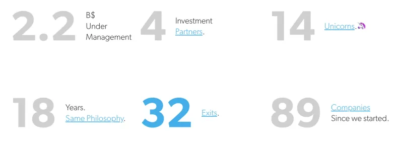 Despite our focused approach, we invest globally (US, Europe, Israel) and operate across many segments. We can do this because we rely mainly on word of mouth and referrals from our own entrepreneurs and executives.