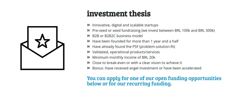 As put by their team, “Bossanova is the most active VC in Latin America; We invest in startups at the pre-seed stage; B2B or B2B2C companies with scalable and digital business models that are operating and making money.”
