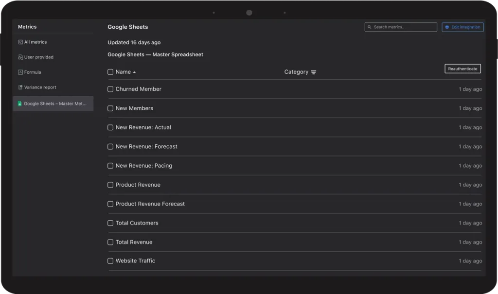 Connect to our 13+ other integrations to chart your core metrics from multiple sources in one place. For example, chart your Google Sheets data alongside accounting data from Xero or Quickbooks.