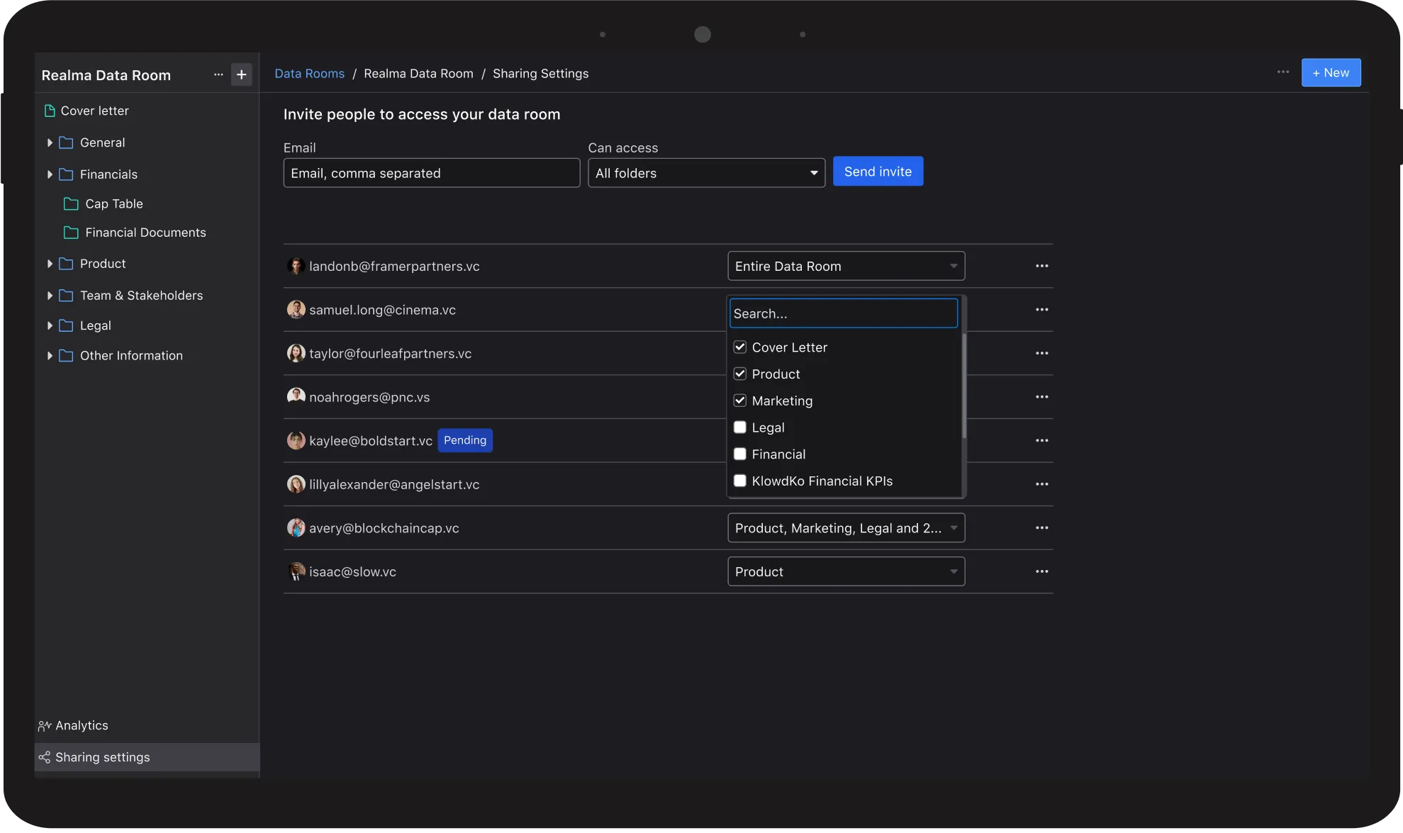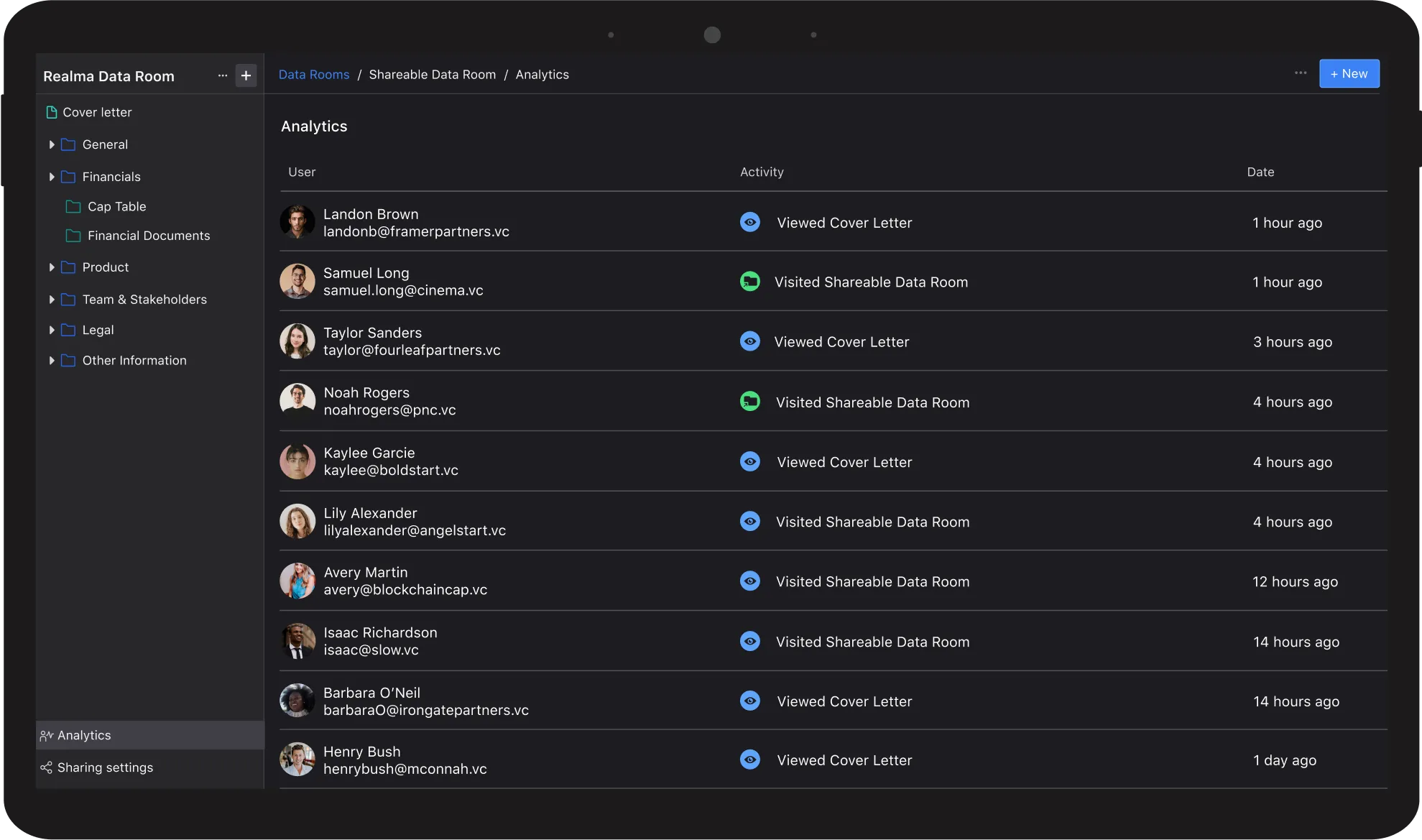 We’ll give you the control and data you need to understand how investors interact with your pitch deck and data room.