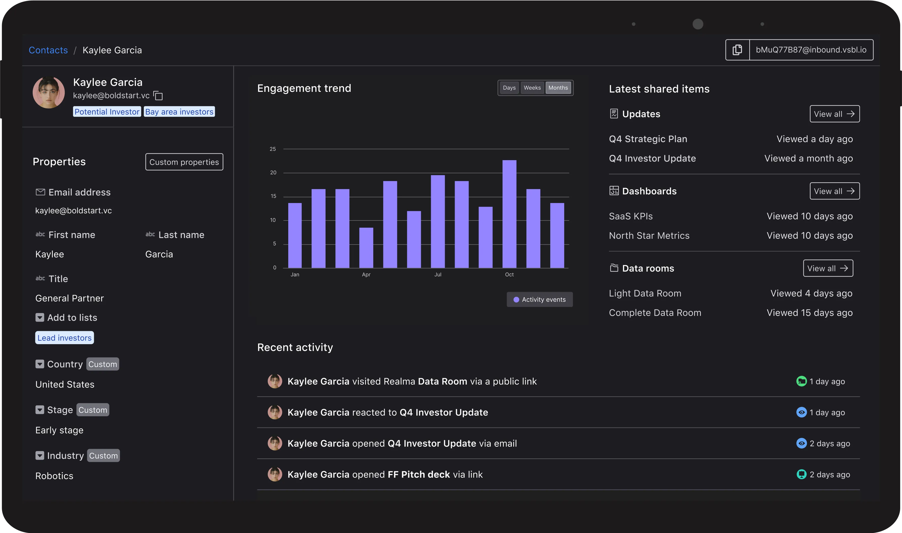 Carry on investor conversation with real-time engagement analytics.