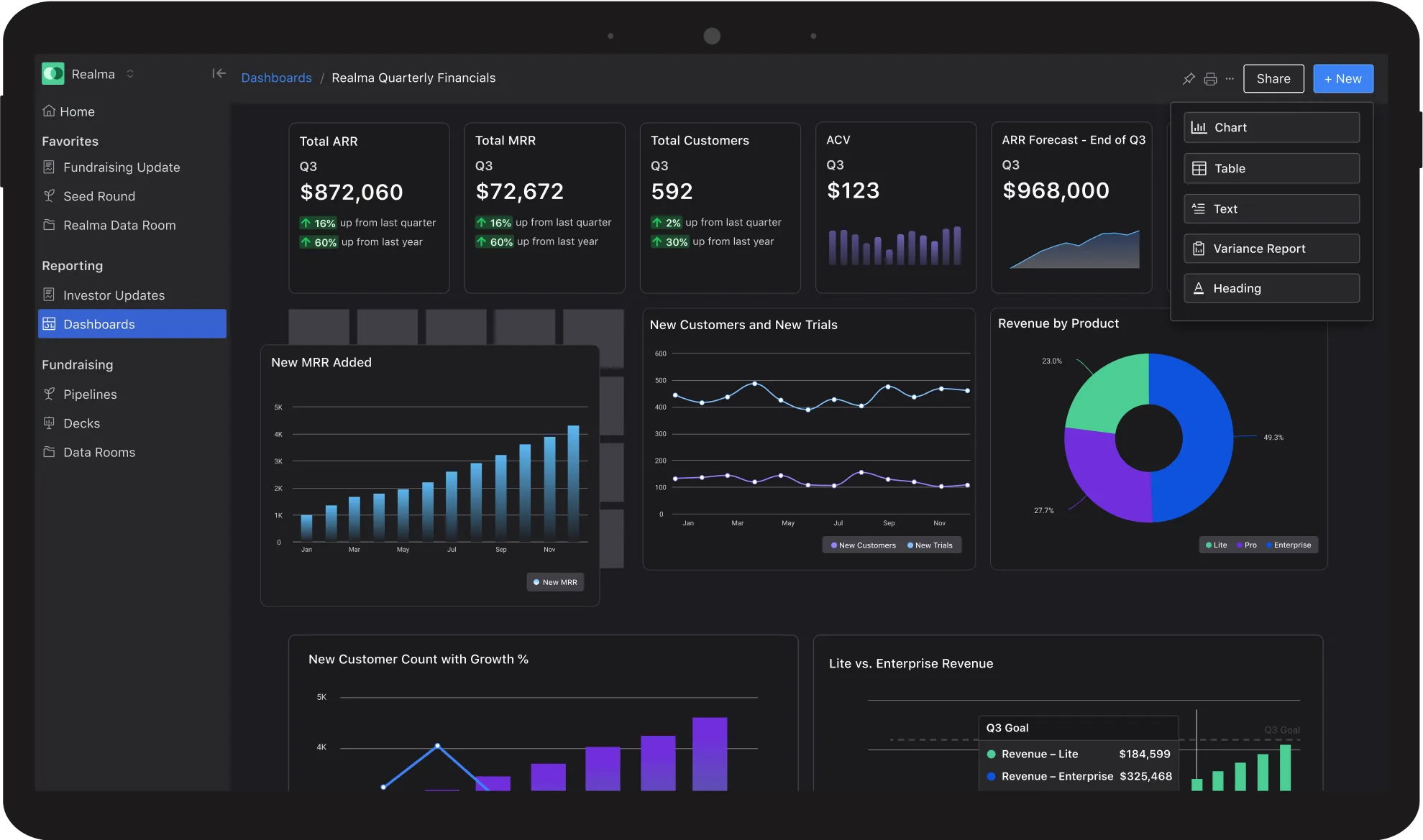 Enrich Your Investor Communication with Powerful Dashboards & Charts