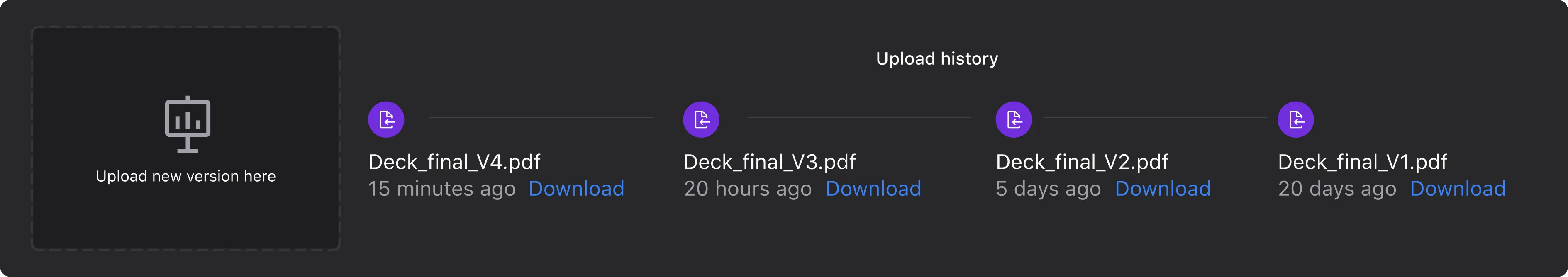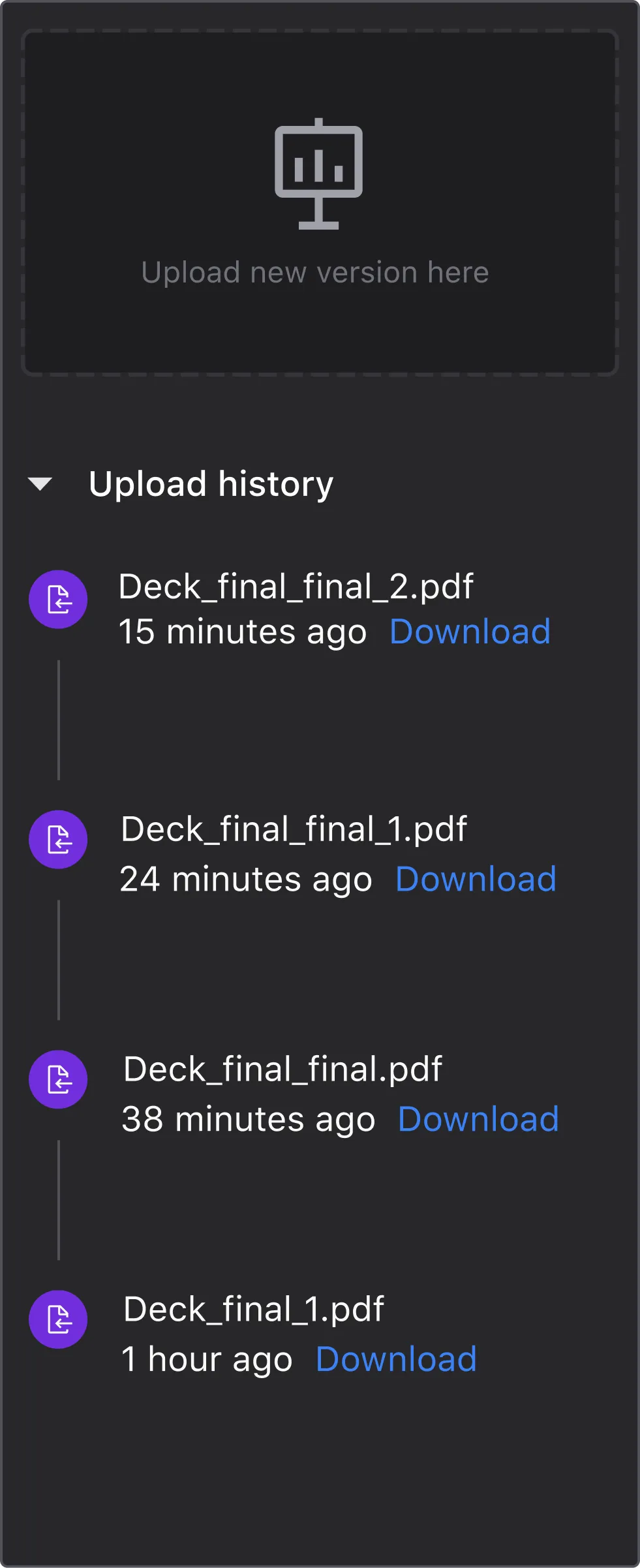 Keep investors updated with seamless version control. Upload your latest deck, and we’ll handle the rest.