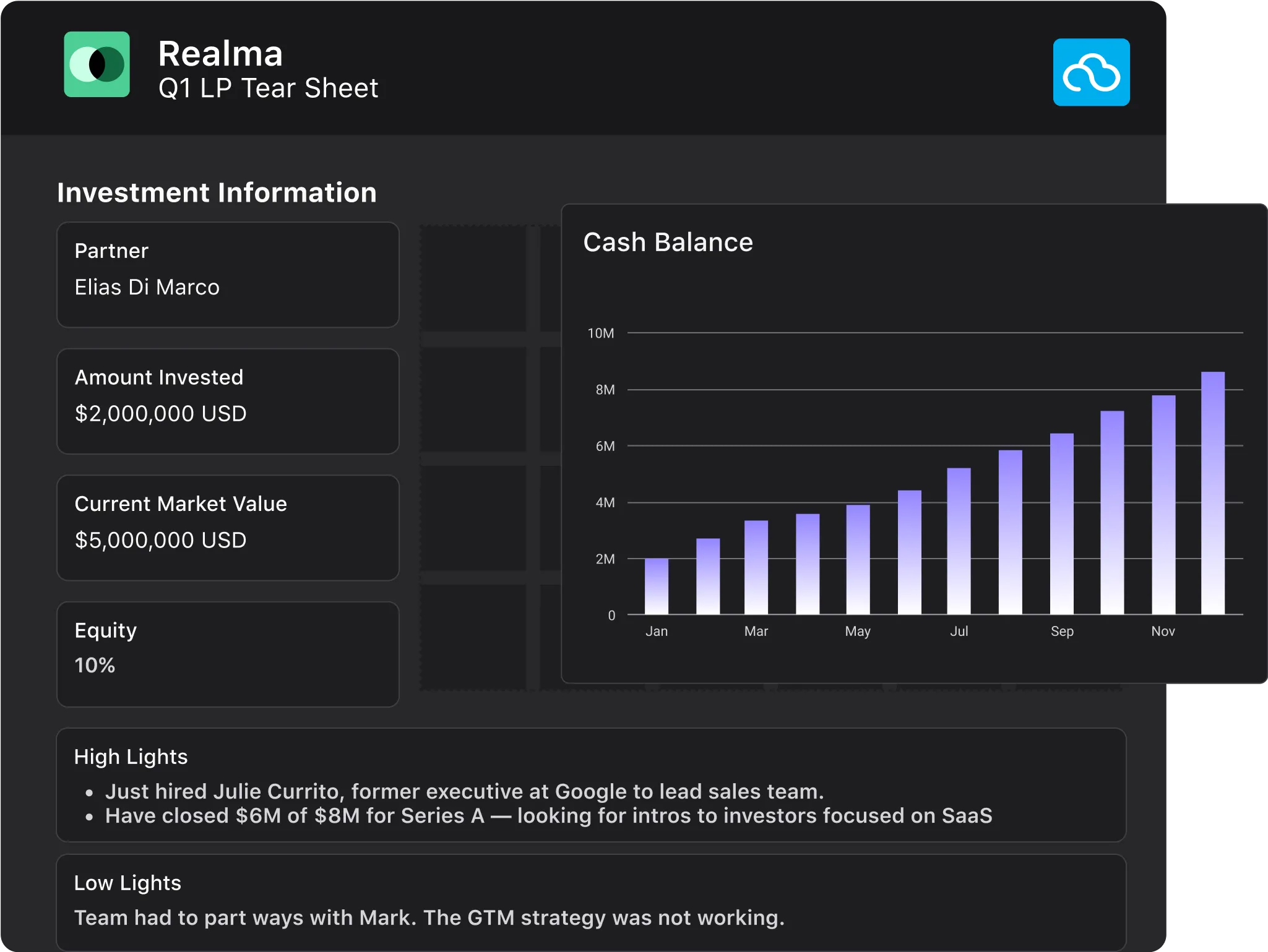View how the best VC firms utilize tear sheets for their LP reporting