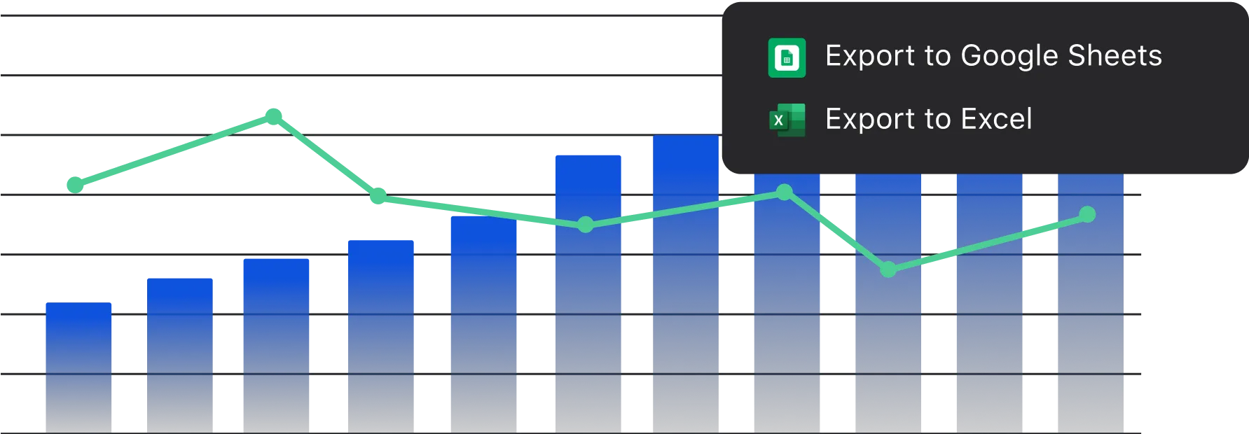 Automatically export Visible data to Google Sheets or download to Excel.